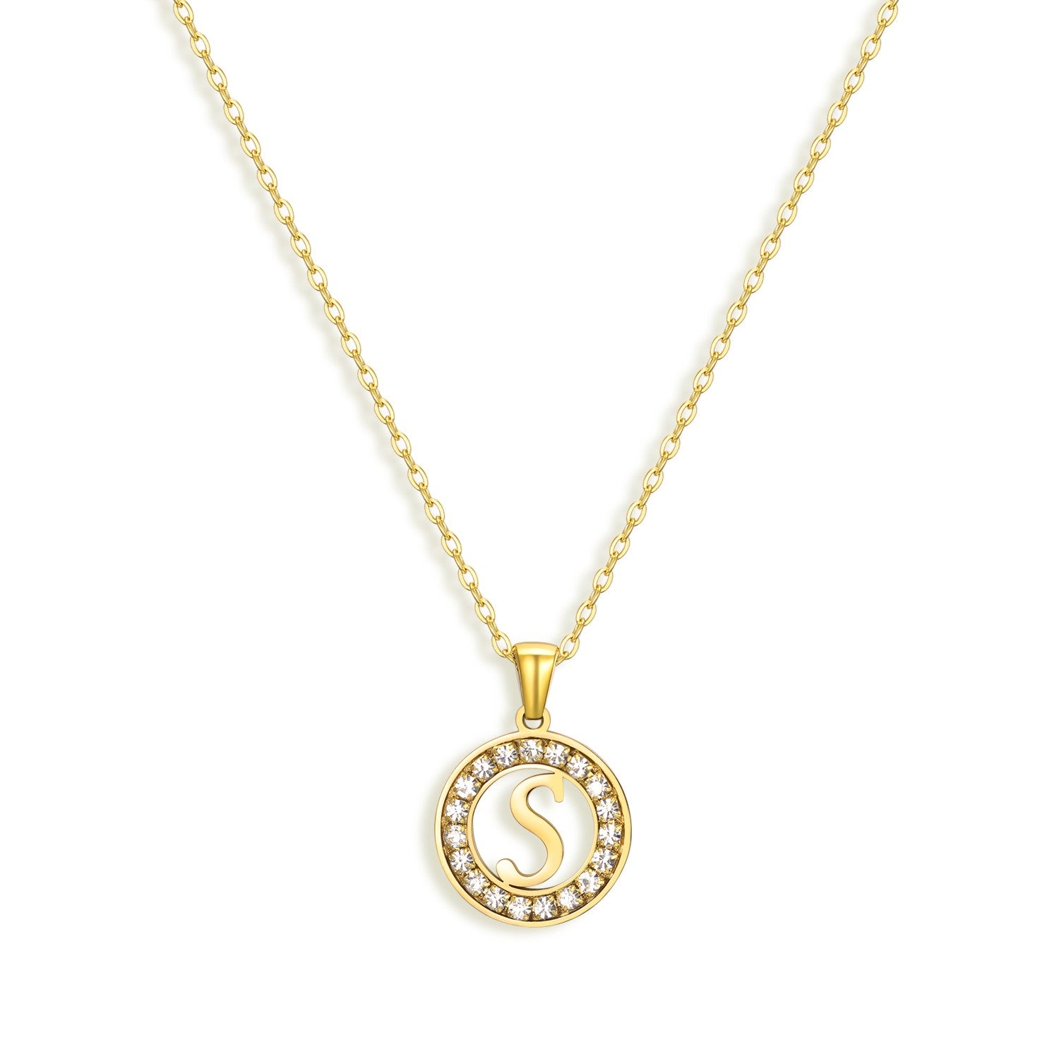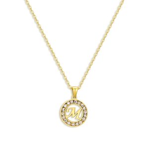 Make a statement with the Cherish Me Necklace! Featuring an initial pendant and sparkling CZ stones. this waterproof necklace is the perfect accessory for any occasion. Show off your unique style with this personalized stylish piece.?