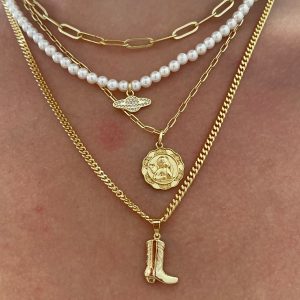This necklace is out of this world! These faux pearls and Saturn pendant will elevate any outfit! Add the Shining Snake 3.0 and Heaven Sent chains for a match written in the stars.?Wear this baby alone. or pair it with our for a combo that’s out of this world!